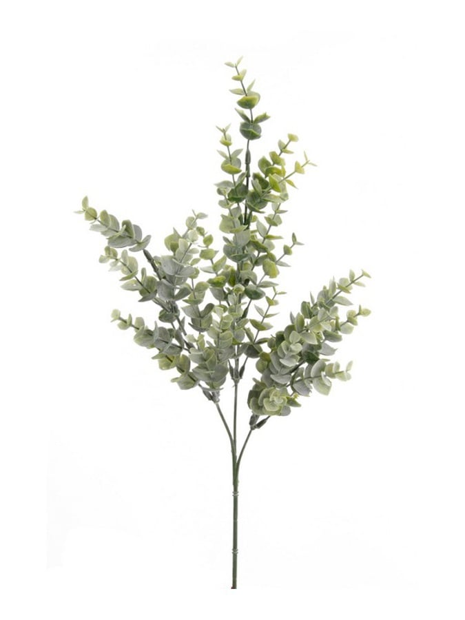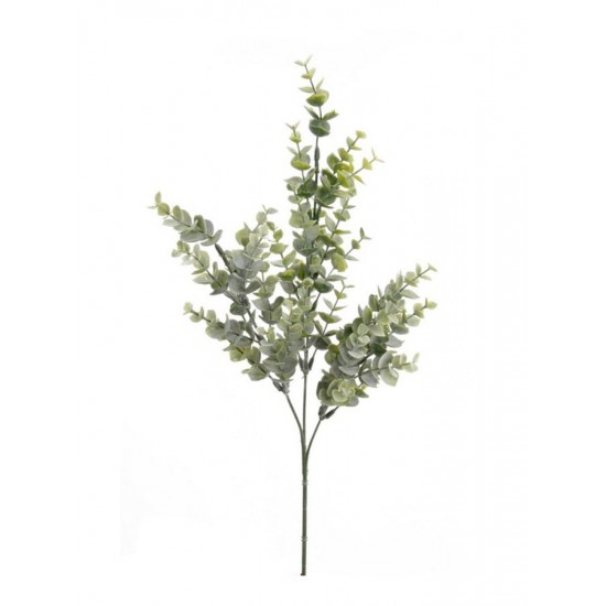 Aceasta ramura de eucalipt artificial, usor arcuita si cu 3 crengute elegante, masoara 68cm si este realizata din mase plastice. Ideal pentru vaze cilindrice sau compozitii suspendate.