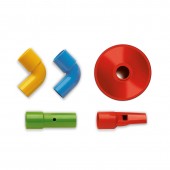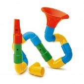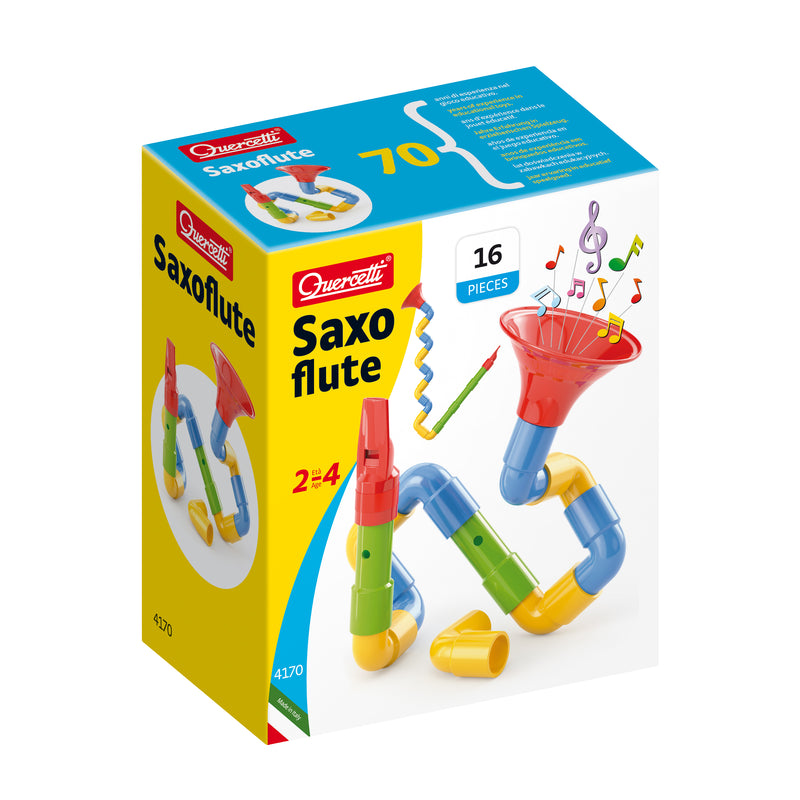 Setul de constructie Saxoflute consta din parti colorate, interconectate, de diferite forme, care va permit sa asamblati unul dintre propriile instrumente muzicale, cum ar fi o trompeta, un flaut sau un saxofon, care poate fi apoi cantat. Toate piesele sunt netoxice asigurand un joc in siguranta.