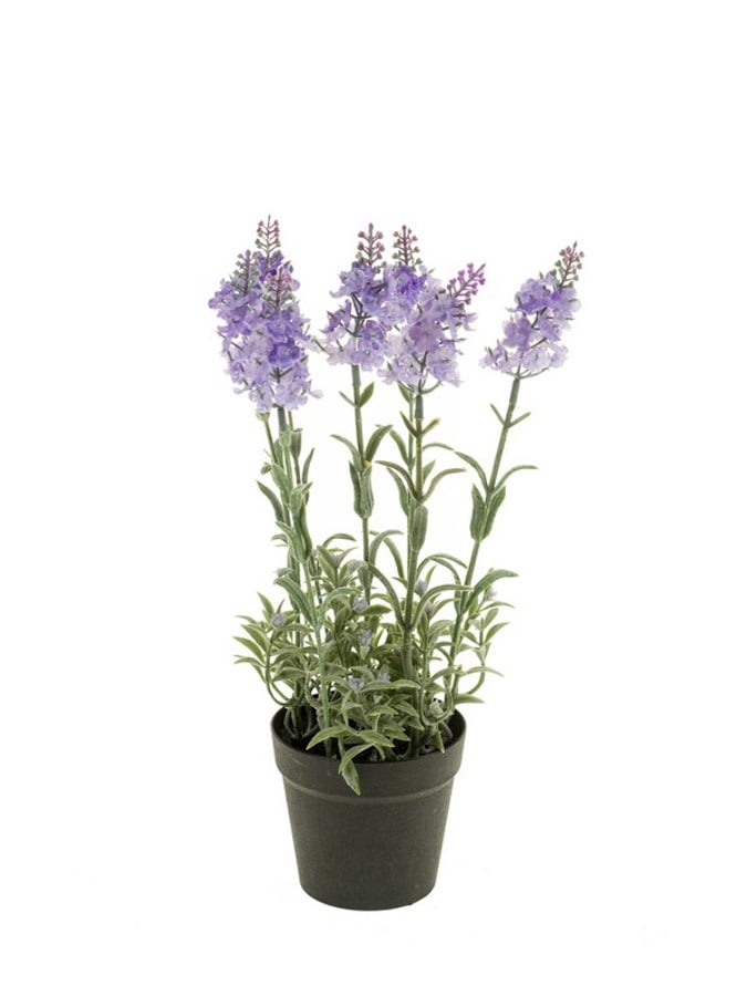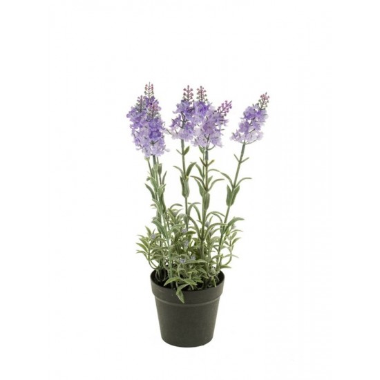 Lavanda artificiala cu 7 fire in nuante de albastru deschis este alegerea perfecta pentru un decor calm si luminos. Are 28 cm inaltime, florile sunt realizate din mase plastice cu un finisaj realist, iar ghiveciul inclus se potriveste in orice ambient.