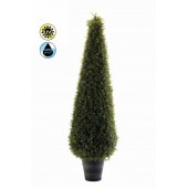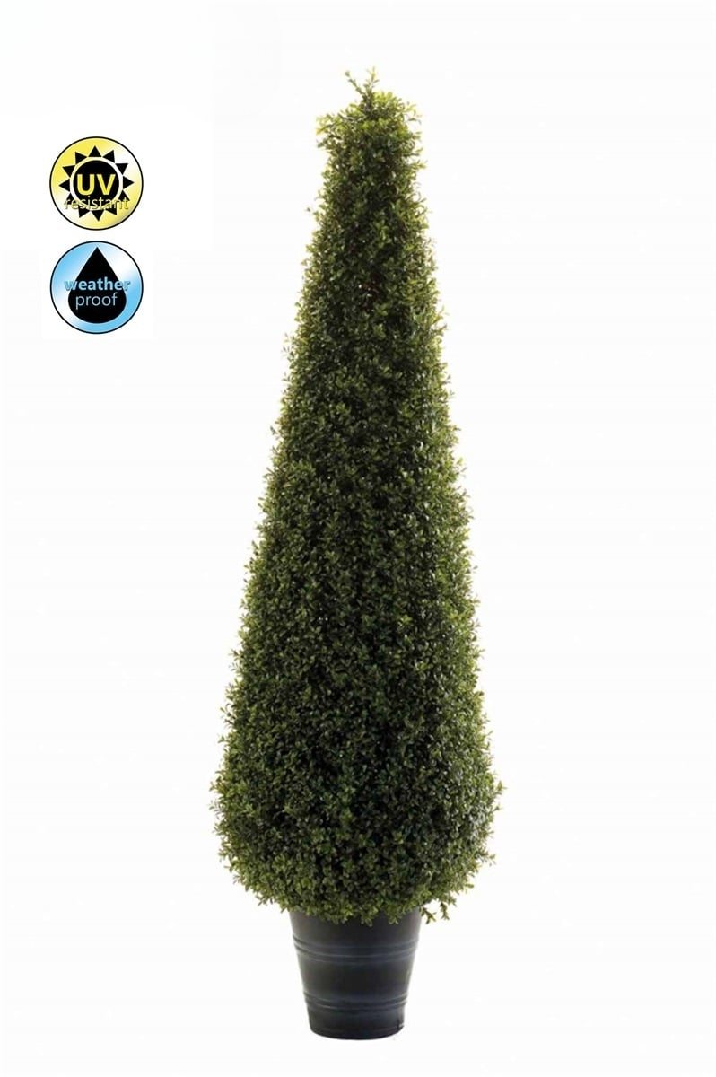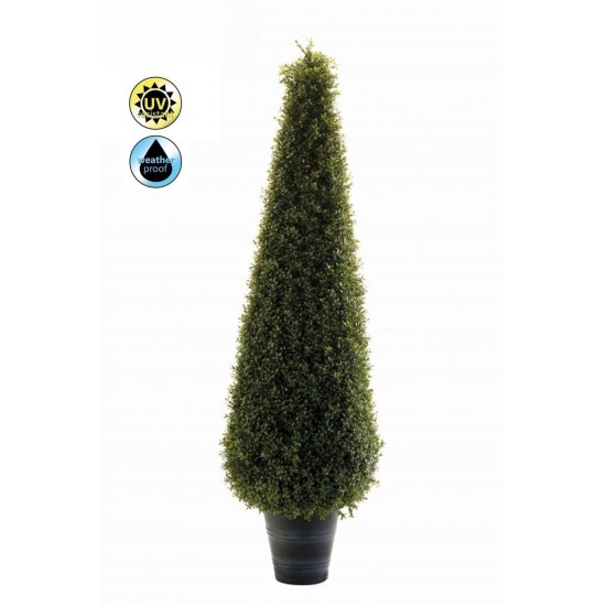 Piramida decorativa din buxus artificial, d 40cm, h 135cm, in ghiveci de 25cm din plastic, rezistenta UV