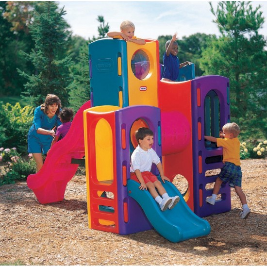 Caracteristici: spatiu mare de adapost, trei zone diferite de joc, dotat cu doua tobogane cu o lungime a coboririi de 90 de cm si 180 de cm, tuneluri de tranzitie printre nivele. Complexul are si un turn de observatie cu hublou. Copiii pot urca pe pereti ca alpinistii. Complexul de joaca de la Little Tikes este perfect pentru jocurile de-a v-ati ascunselea. In acelasi timp se pot juca pina la 8 copii.