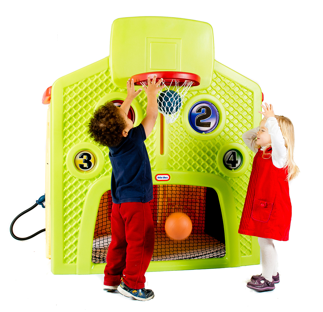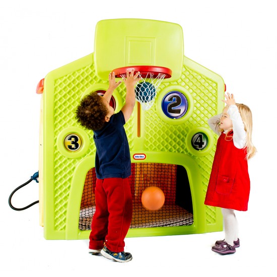 Partea sportiva include: cos de baschet, porti de fotbal, patru tinte numerotate, minge.