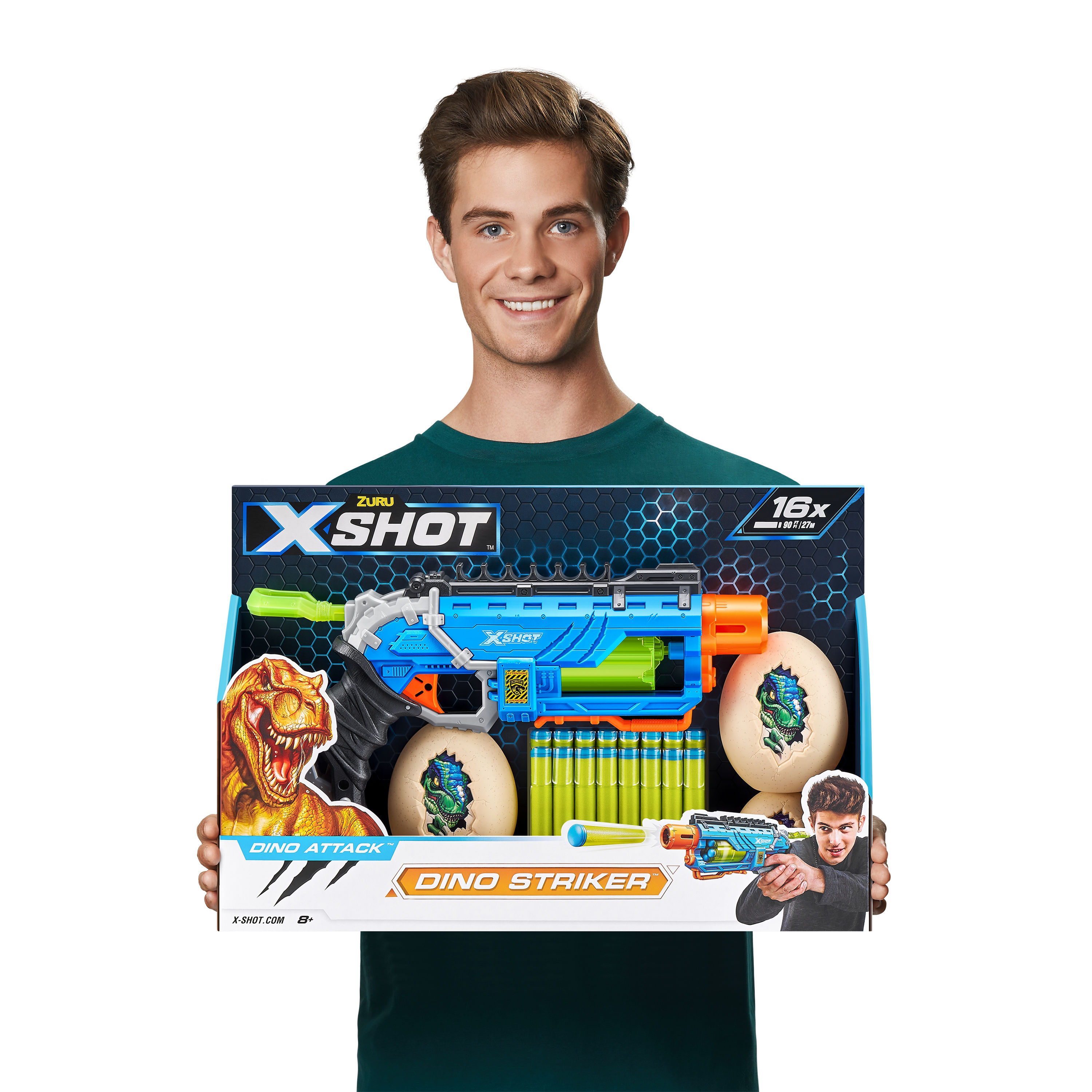 Te asteapta o noua aventura, cu X-Shot Dino Striker, esti gata de lupta. Uimitor, acum poti fi un adevarat vanator de dinozauri. Inarmeaza-te cu pistolul cu cartuse si incepe goana dupa cele mai minunate si uriase mamifere care au trait vreodata pe pamant.