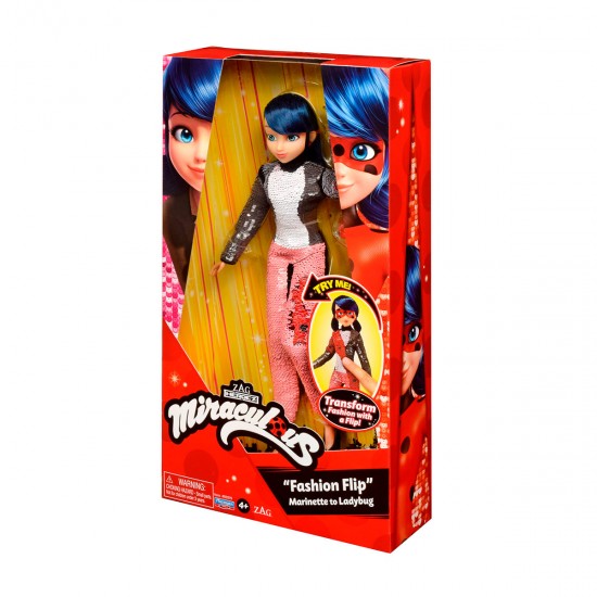 Papusa Marinettte in costum cu paiete reversibile Lady Bug Miraculous