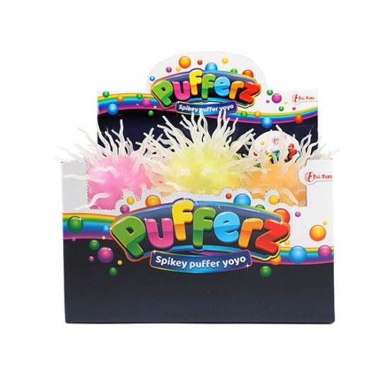 Jucarie elastica minge cu tepi moi 8cm Pufferz -Super Shiny Spikey diverse culori