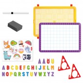 O tabla magnetica care poate fi folosita in 2 moduri, adica pentru a te juca cu magneti sau pentru a scrie si a desena cu un marker sters. Acest set de jucarii magnetice a fost conceput special pentru a determina copiii sa se antreneze sa-si scrie primele cuvinte intr-un mod distractiv si usor.