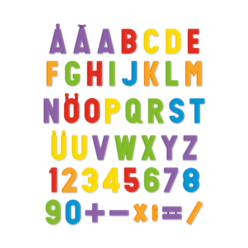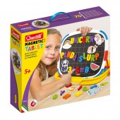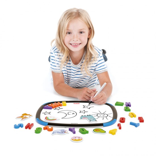 O noua tabla magnetica fata-verso cu design inovator, muchii rotunjite. Colturile mesei sunt protejate cu o margine de cauciuc pentru a face jucaria absolut sigura pentru copii. Copiii pot atasa litere si numere magnetice la o masa sau pot scrie marcaje colorate. Setul include de asemenea magneti cu imagini care stimuleaza copiii sa scrie numele obiectelor sau animalelor pe acesti magneti.