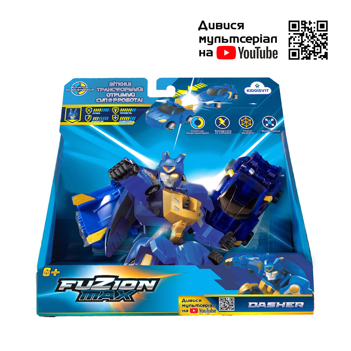 Pentru iubitorii de jocuri fantastice Fuzion Max vine cu noul synobot Dasher. Robotul este mereu pregatit pentru victorii si nu admite infrangerile. Hotarat si intotdeauna primul care se grabeste in lupta cu animabotii. Dasher este foarte rapid si capabil sa invinga inamicul atat in lupta corp la corp, cat si la distanta. Pentru a te transforma intr-un robot, trebuie sa impingi doua masini una spre alta.