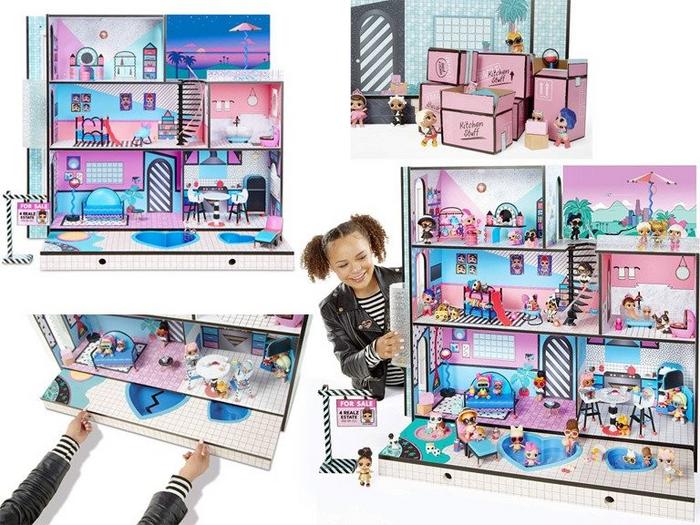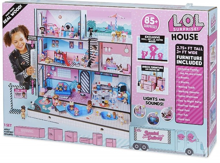 In noul set "CASA" de la LOL Surprise gasiti peste 85 de accesorii. In interiorul cutiei veti gasi o casa de lemn cu trei etaje pentru papusi, mobilier pentru curte si toate camerele de interior, inclusiv o baie, camera pentru copii, terasa pe acoperis si o bucatarie.