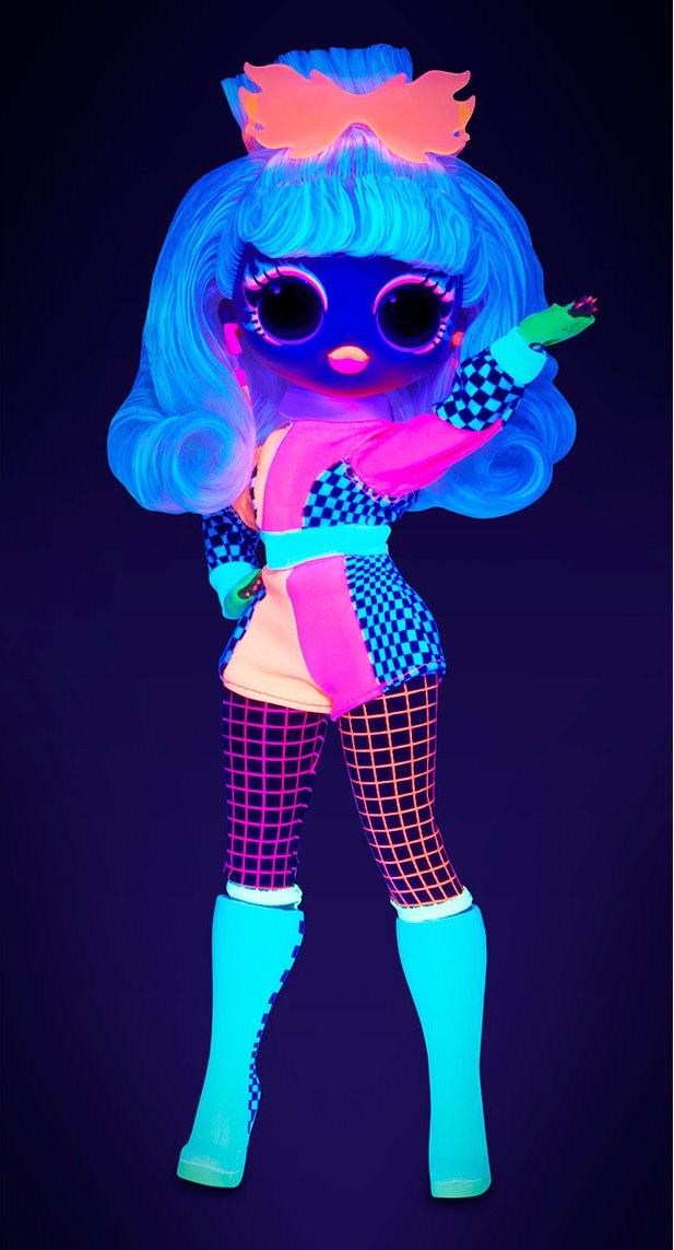 Indreptati lumina unei lanterne ultraviolete spre o papusa O.M.G. si veti avea parte de o surpriza.