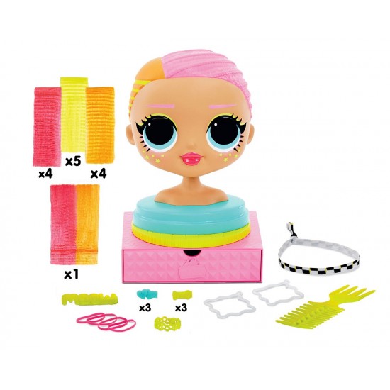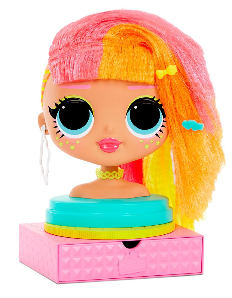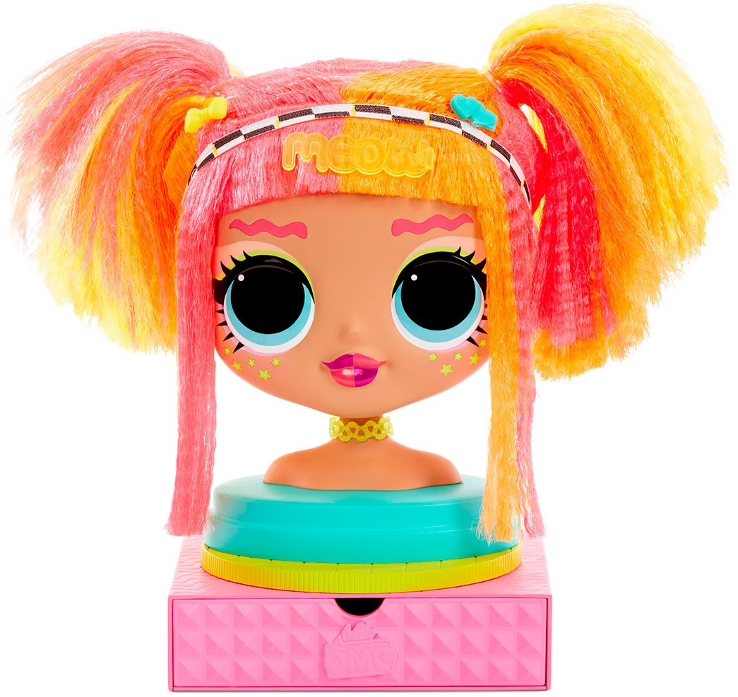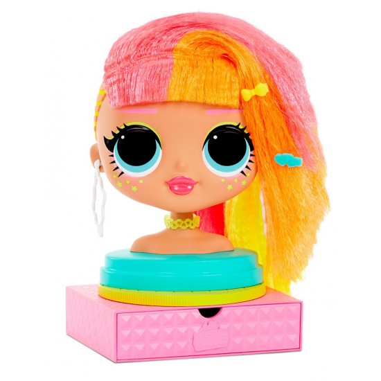 Creati-va propriile coafuri pentru L.O.L. Surprise! seria "O .M.G": schimba imagini si stiluri. Este atat de distractiv! Lady Neon are par verde neon incredibil de stralucitor.