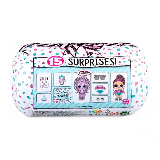 Set de joaca cu papusa L.O.L. SURPRISE! seria Under Wraps "- CONFETTI - eroi familiari cu unboxing exploziv nou. Trageti banda si activati clapeta de confetti de petrecere!