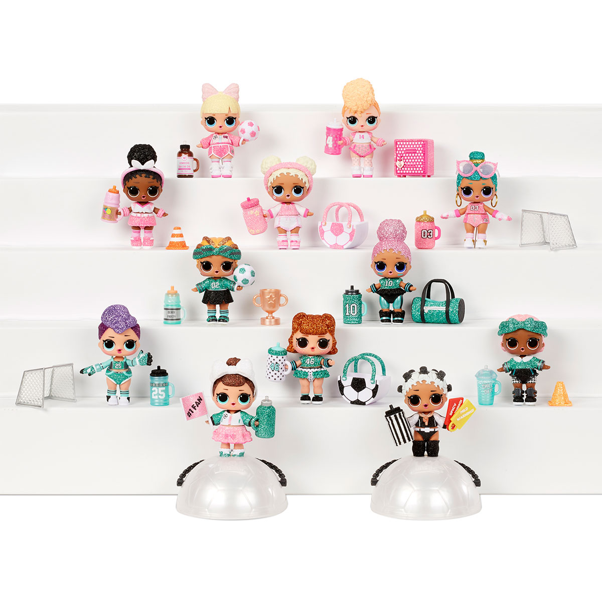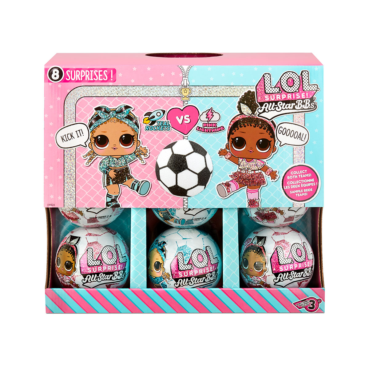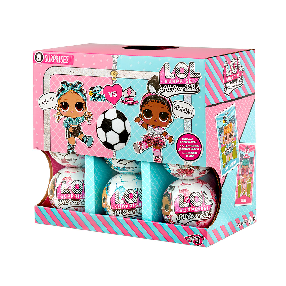 Faceti cunostinta cu noua serie All-Star B.B.s - o piesa de teatru cu o papusa L.O.L. Surprise! - Fotbaliste. Acum L.O.L.-ul tau preferat Surpriza incearca sa joace fotbal. Se impart in doua echipe - Turquoise Rocket si Pink Lightning si sunt gata sa lupte pentru dragostea dvs. Papusile au o noua uniforma stralucitoare in culorile echipei si accesorii sport dragute. Si, desigur, surprize de neinlocuit in interiorul mingii!