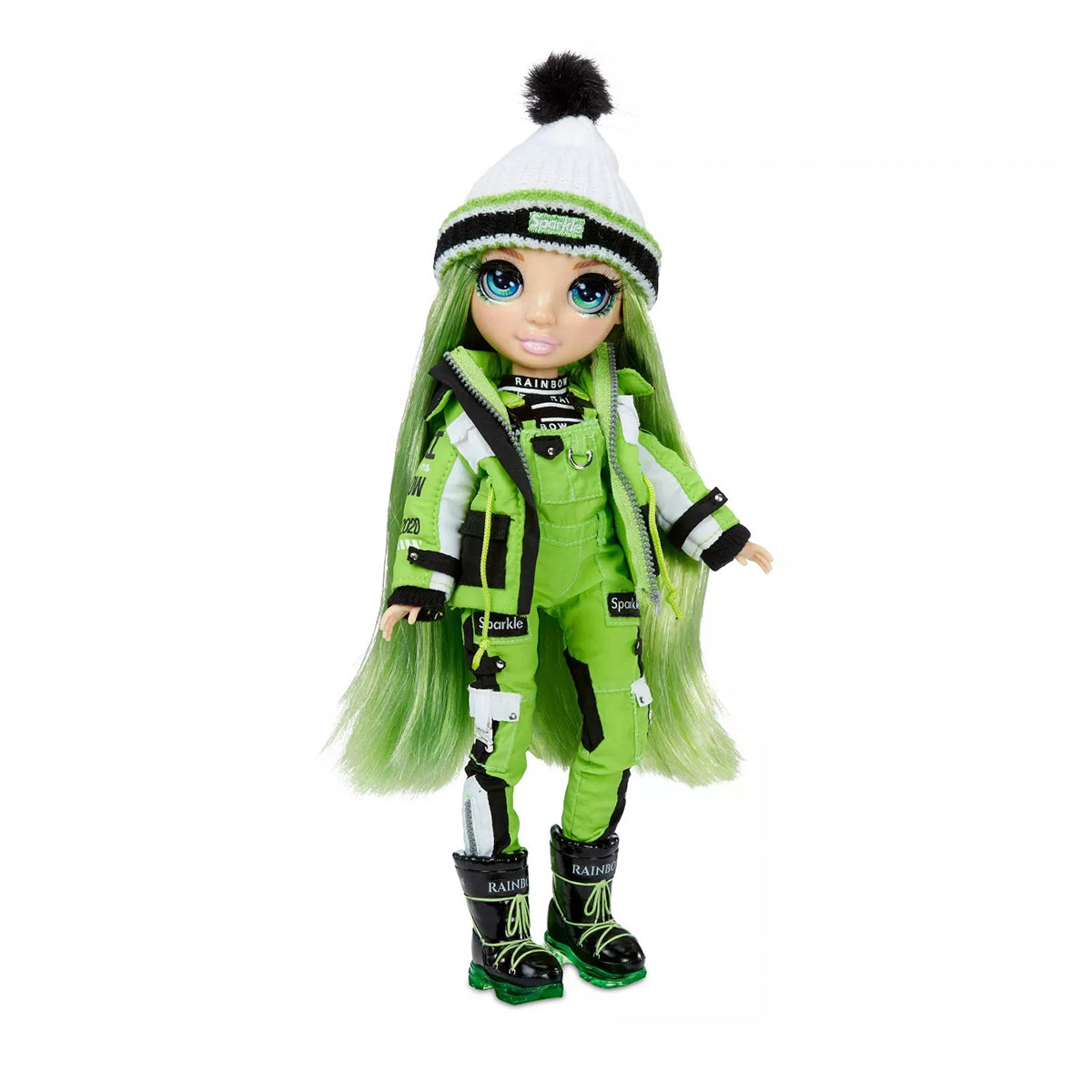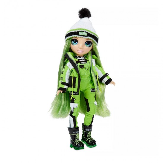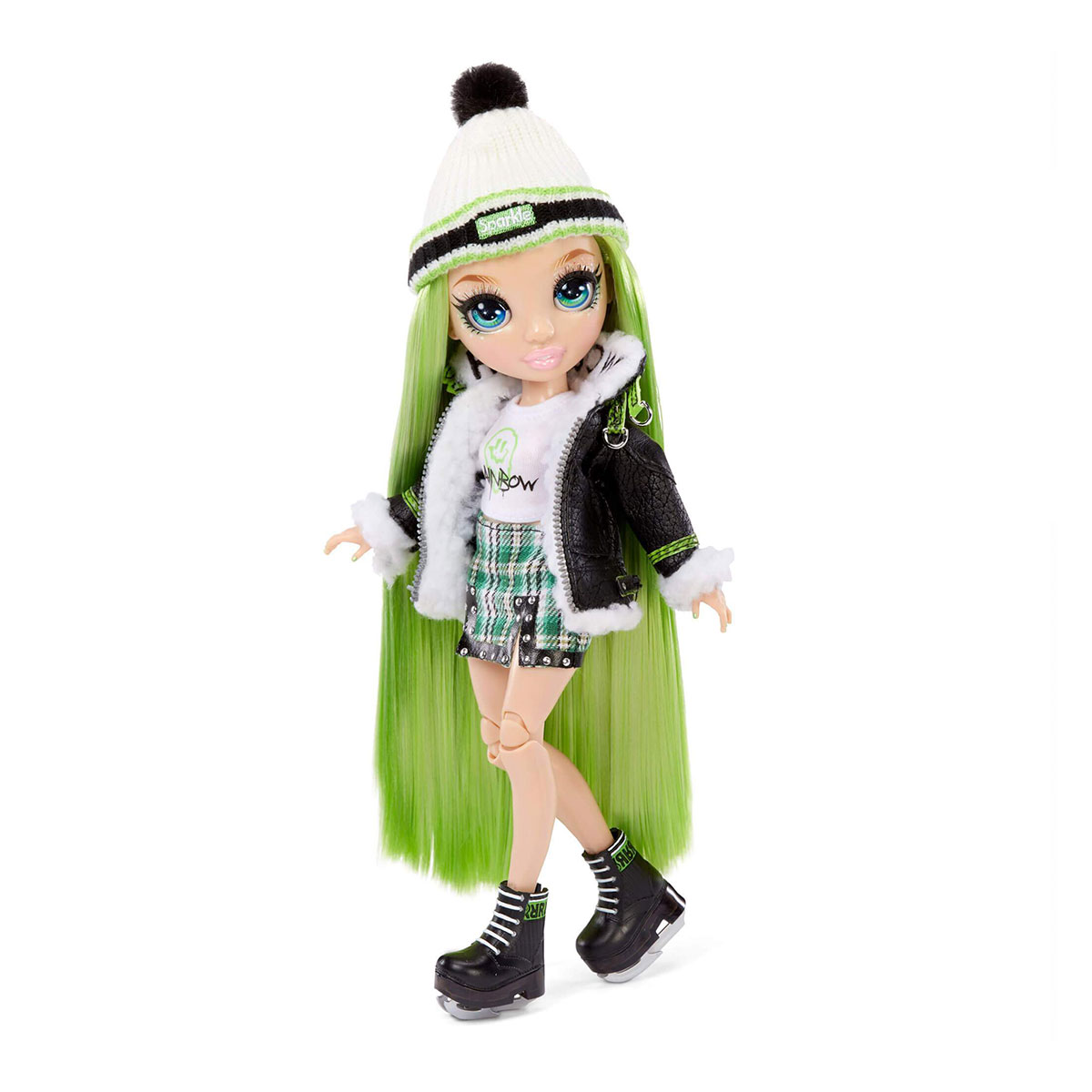 Completeaza-ti colectia feerica de iarna cu noua papusa RAINBOW HIGH Seria „Winter Break”. Toyland ti-o prezinta pe JADE HUNTER, o frumusete stilata cu par si haine verde neon.