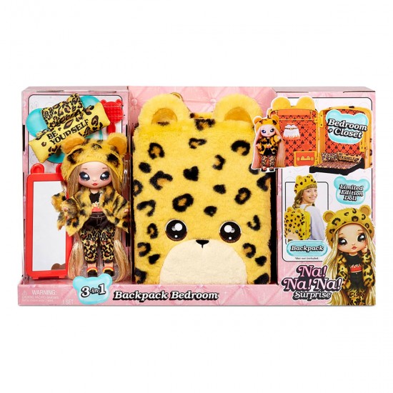 Setul de joaca cu papusa Na!Na!Na! Surprise Jennel Jaguar 3 in 1 este un rucsac dragut in forma de jaguar de plus, cu o camera confortabila, cu o papusa exclusiva ascunsa in interior. Gasiti toate surprizele!