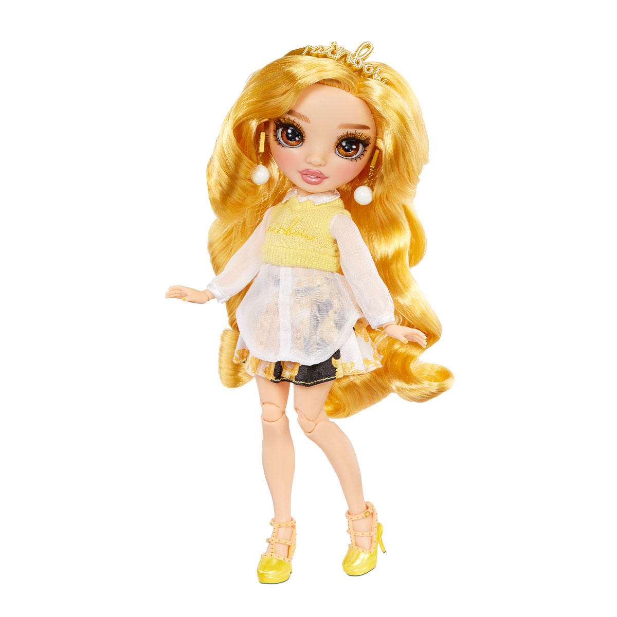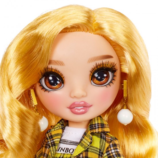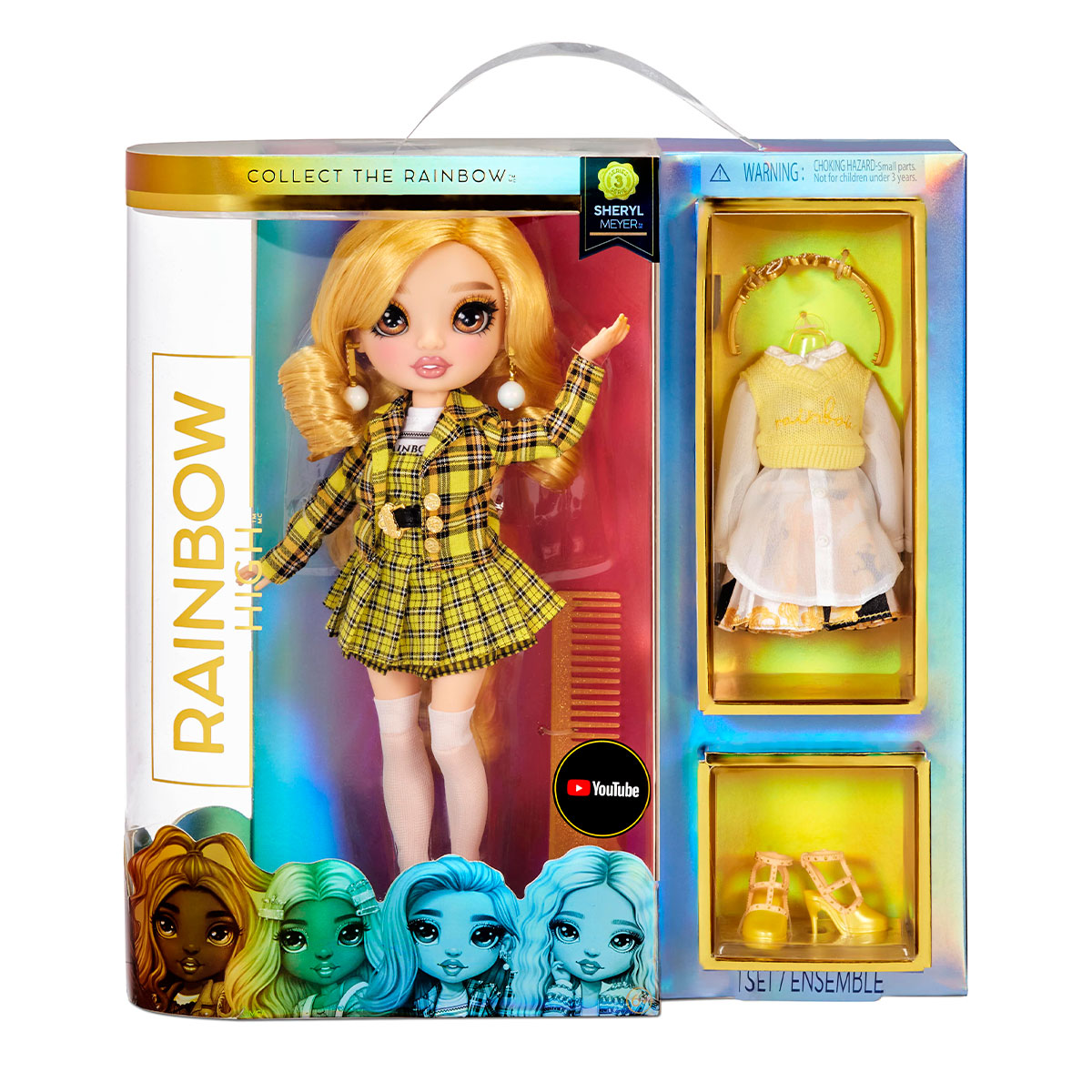 Papusa RAINBOW HIGH S3 - Sheryl Meyer este o frumusete fermecatoare, cu par si haine de culoare galbena.