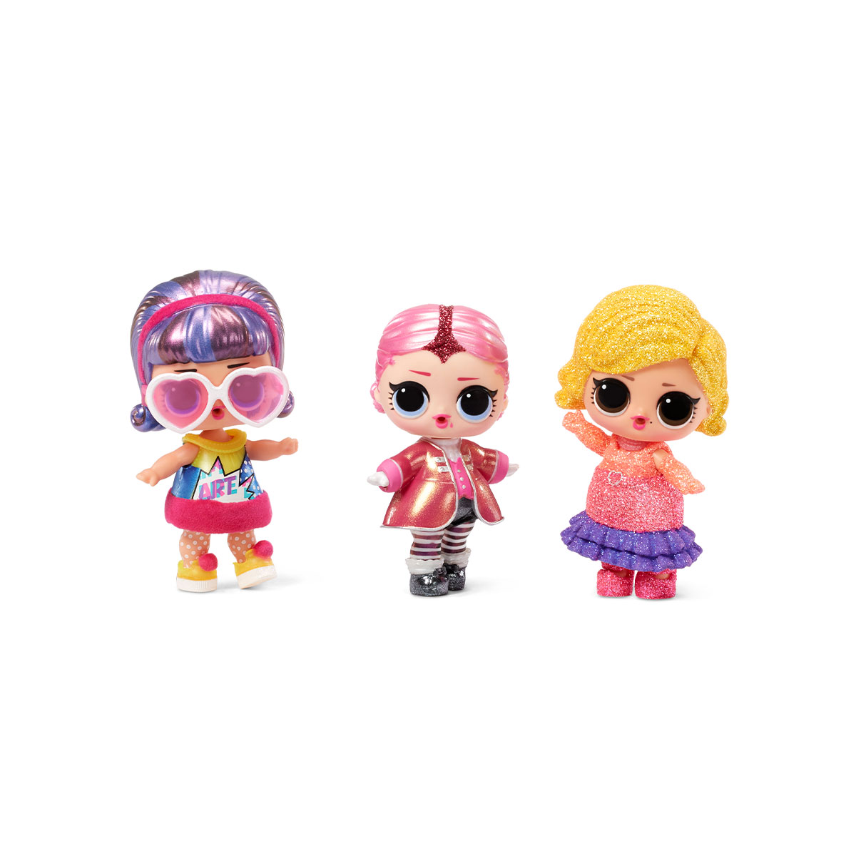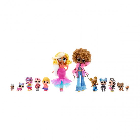 Include 2 papusi O.M.G, 6 papusi standard L.O.L. SURPRISE!, 2 surori si 2 animale de companie.
