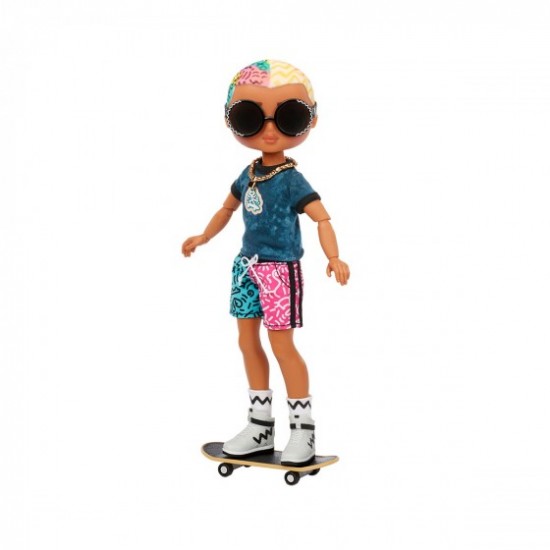 Set de joaca cu papusa L.O.L. SURPRISE! Seria O.M.G. Baieti "- GUYS este o papusa baiat la moda, cu doua arcuri elegante si un skateboard adevarat!