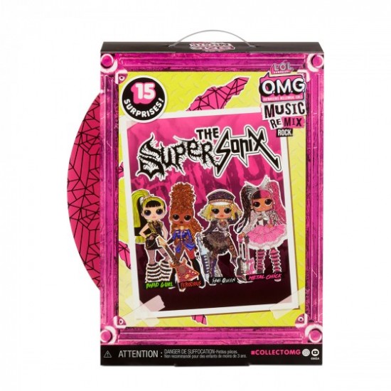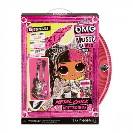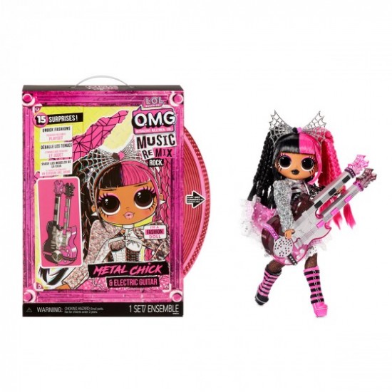 Set papusa L.O.L. SURPRISE! seria "O.M.G. Remix Rock"– METAL CHIC cu chitara electrica