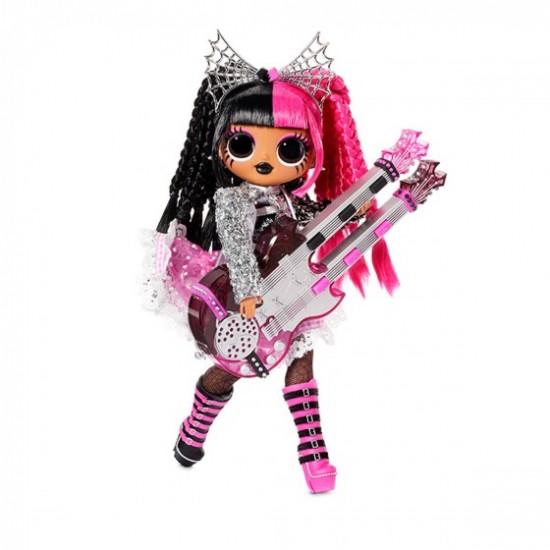 Setul include papusa O.M.G. intr-un stil rock cool cu o chitara electrica.