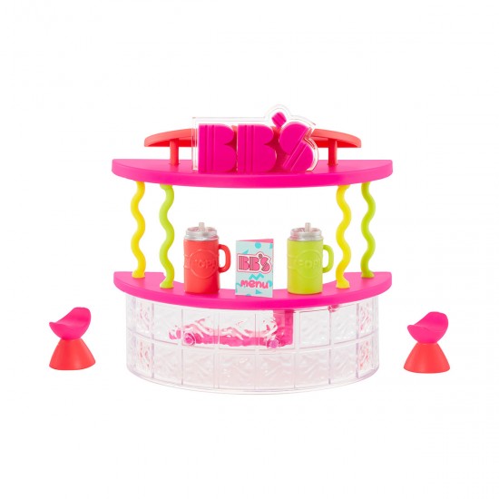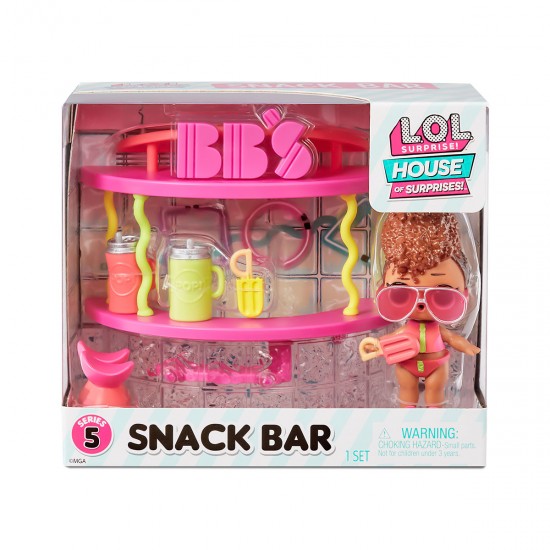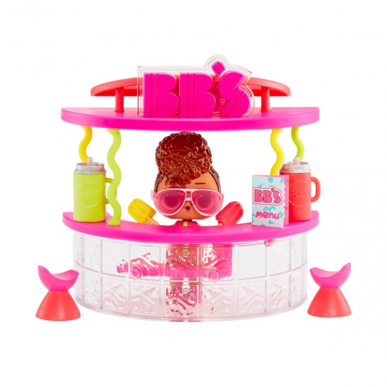 Completeaza-ti colectia L.O.L Surprise House of Surprises cu cel mai tare "Snack Bar" din cate exista. Aranjeaza scaunele, gustarile si bauturile si fii pregatita sa deservesti toti clientii din micutul tau orasel.