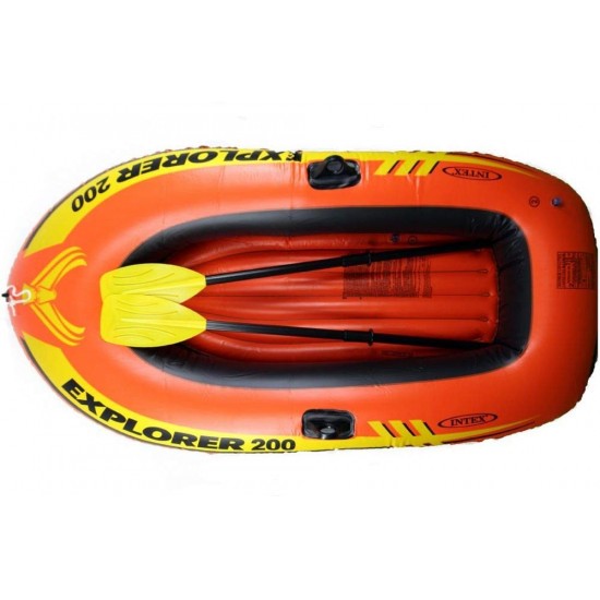 Set Barca gonflabila Intex "Explorer 200", Include Vasle si Pompa, 185 x 94 x 41 cm, Sarcina 95 kg, 6 ani+
