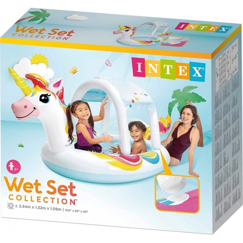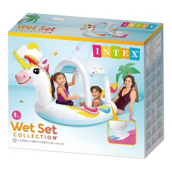 Piscina gonflabila Intex "Unicorn", cu Baldachin si Pulverizator de apa, 254 x 132 x 109 cm, 130 L, 2 ani+