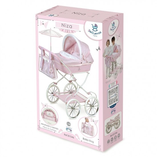 6-81046 Carucior pentru papusi cu umbrela, geanta si accesorii 81cm Niza 2022 DeCuevas