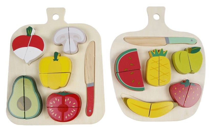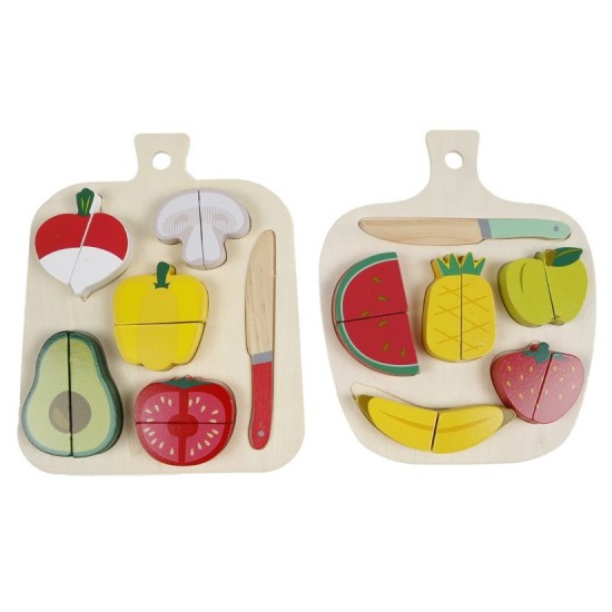 610033 Set Fructe/Legume din lemn de taiat cu tocator Big Tree 12pcs 22x18cm