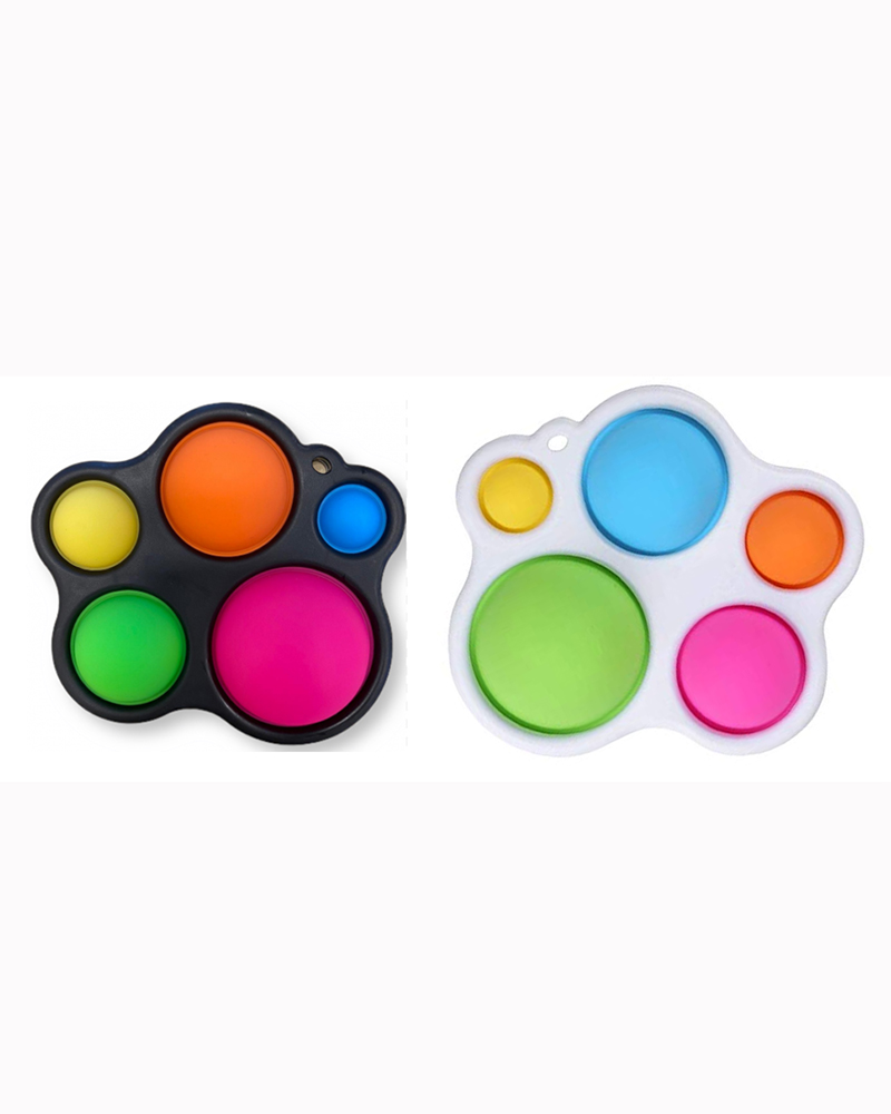 Jucarie senzoriala, antistres cu buline multicolore Dimple 14x13x3cm alb/negru