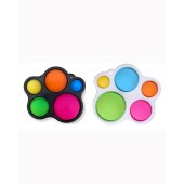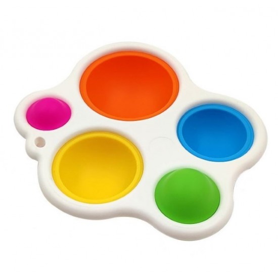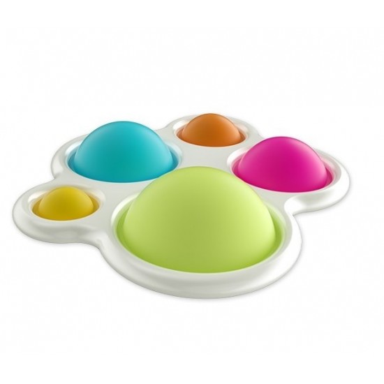 Jucaria senzoriala Dimple formata dintr-un cadru de plastic ce sustine 5 bule de silicon colorate in culori vibrante, ajuta copilul la constientizarea relatiei cauza-efect. Simpla si foarte distractiva jucaria a carei siguranta a fost pe deplin testata, mentine atentia degetelelor dornice de descoperiri. O aventura senzoriala careia nu ii poate rezista nimeni! Jucaria este fabricatra din silicon si plastic ABS de inalta calitate ce poate fi utilizata in siguranta datorita materialelor sigure. Poate fi carata cu usurinta in bagaj, ghizdan, ruscasc datorita dimesiunilor si greutatii ce il fac usor de transportat. Este potrivita pentru orice varsta, atat pentru copii cat si pentru varstnici. Stimuleaza calmul si concentrarea, amelioreaza stresul si dezvolta abilitati motorii fine, coordonarea, atentia, indemanarea. Bulinutele sunt fabricate dintr-un material din silicon moale, sigure, netoxice, durabile, rezistente la rupere, nu se deterioreaza usor. Se spala si dezinfecteaza cu usurinta, fiind reutilizabila si lavabila. Usor de transportat si poate fi folosita oricand.