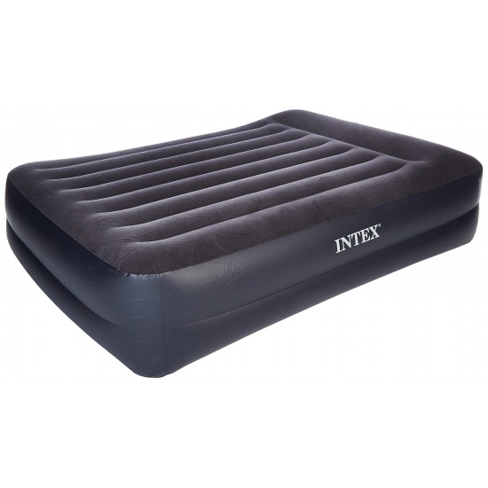 Pat gonflabil dublu Intex Pillow Rest Raised, 203 x 152 x 42 cm, pompa electrica incorporata 220V, tehnologie Fiber-Tech