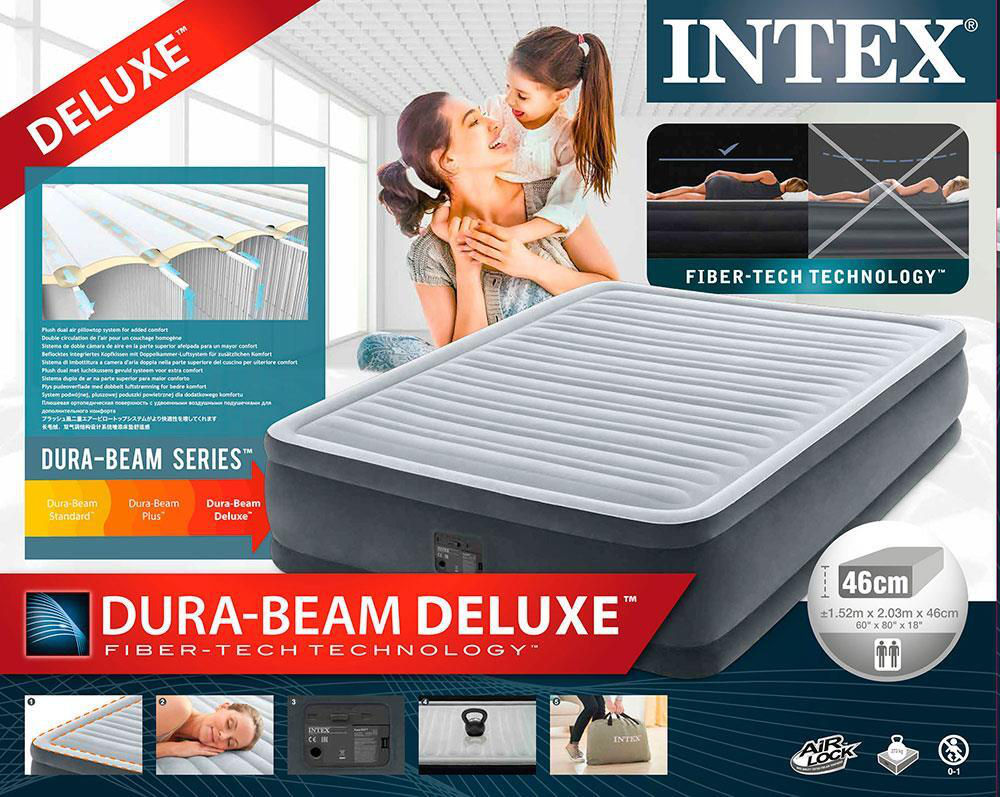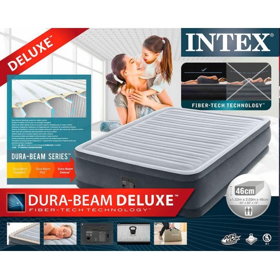 Pat gonflabil Intex Comfort-Plush Elevated, Tehnologie Fiber-Tech, Pompa Electrica Incorporata 220V, 152 x 203 x 46 cm, max. 272 kg