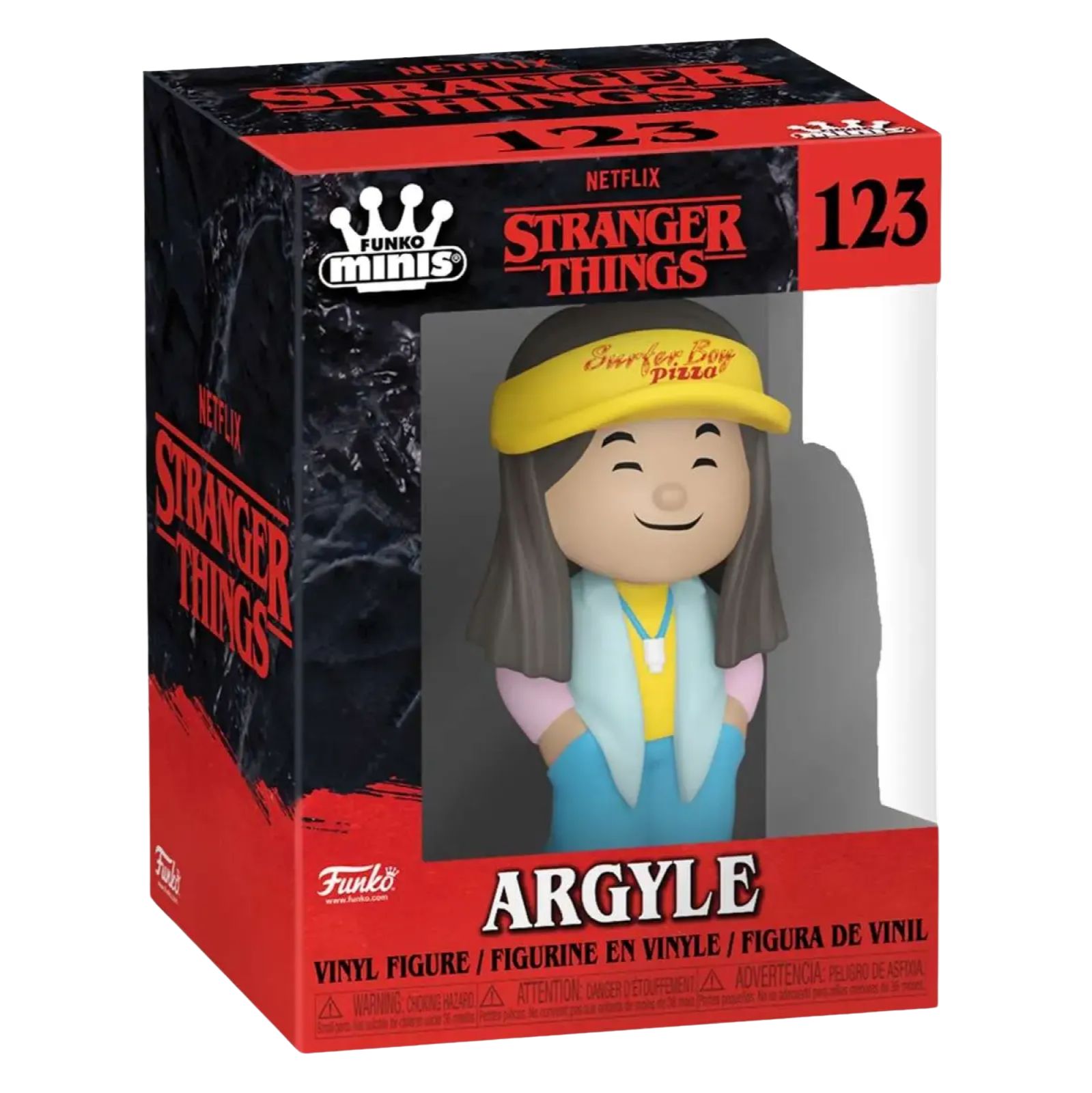 Argyle, noul prieten al lui Jonathan Byers din California, a devenit rapid un personaj adorat de fani datorita stilului sau nonsalant, a dubei sale de livrat pizza "Surfer Boy Pizza" si a optimismului sau de nezdruncinat in fata pericolelor din "Lumea Rasturnata" (The Upside Down). Aceasta figurina surprinde perfect estetica retro si spiritul liber al anilor '80.
