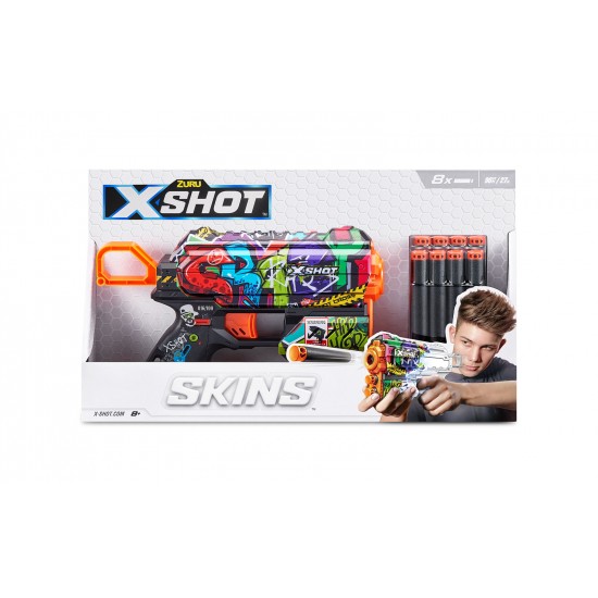 Blaster X-Shot Skins Flux Gun cu 8 cartuse 5 tipuri 25533