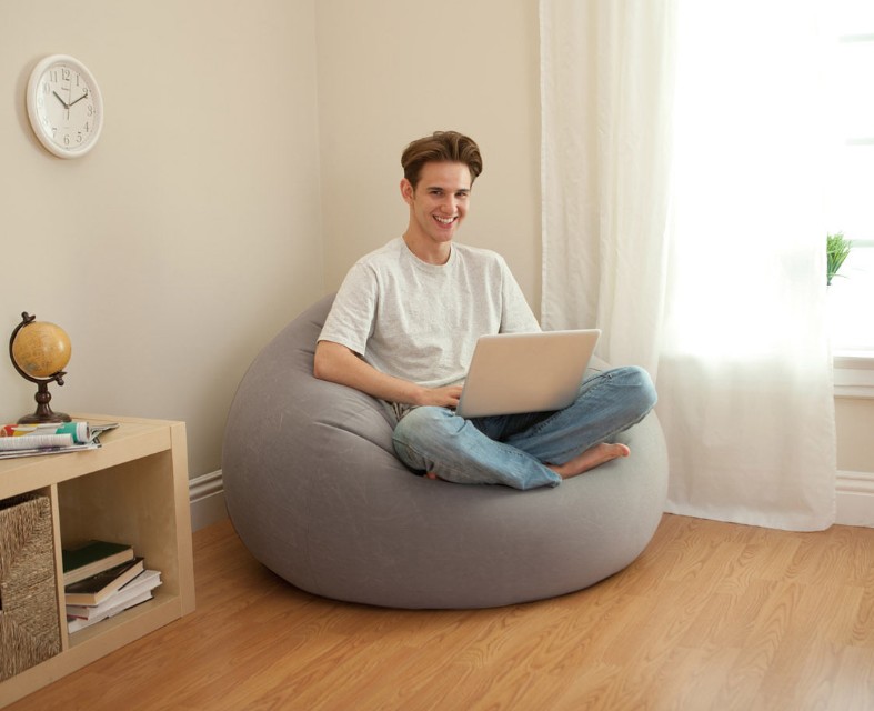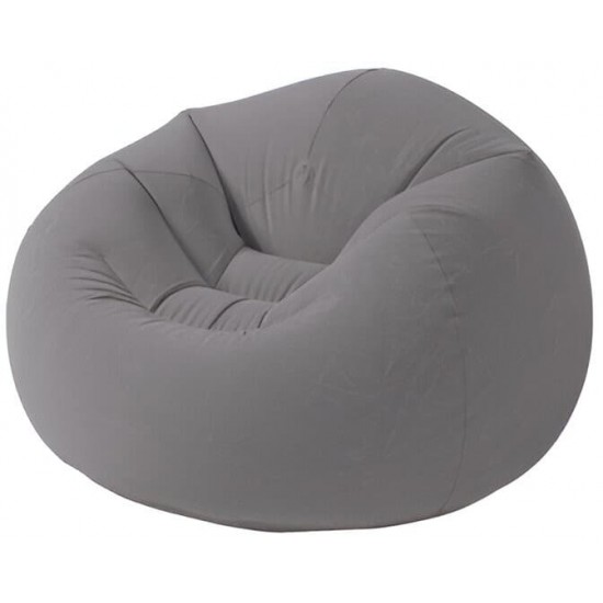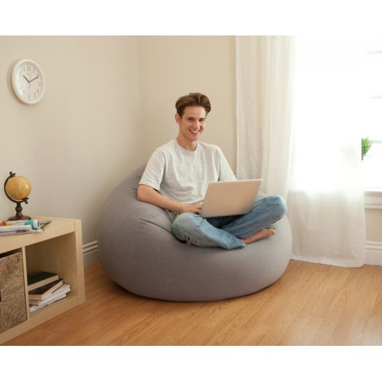 Fotoliu Gonflabil Intex Beanless Bag, Design Ergonomic, Suprafata Catifelata, 114 x 114 x 71 cm, max. 100 kg, Gri
