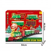 Set Tren Retro Christmas verde-rosu cu cale ferata si 3 vagoane, sunete, lumini, efect fum