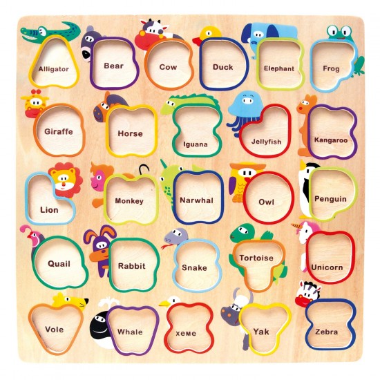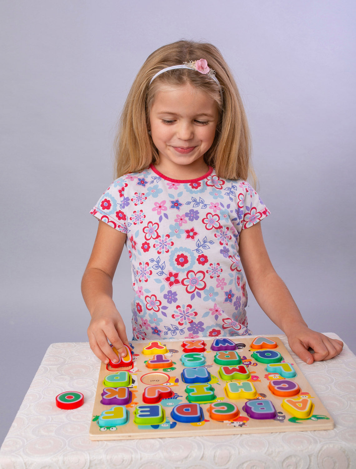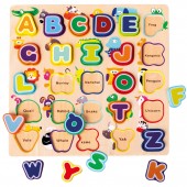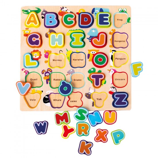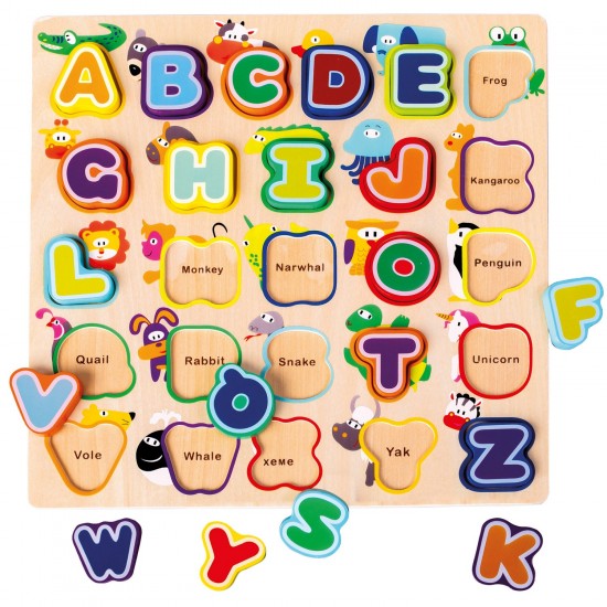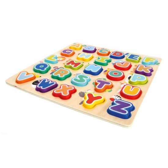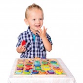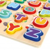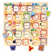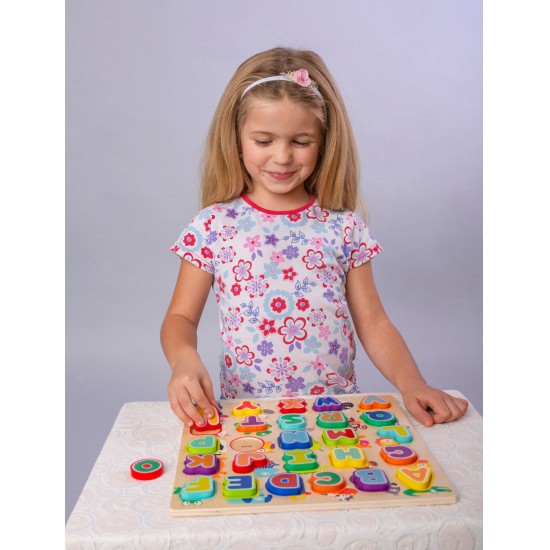 Descopera un joc deosebit pentru copilasi care vor putea invata mai usor literele. Tablita din lemn contine 26 spatii goale in forma de litere, iar fiecare dintre ele apartine unei litere din lemn.