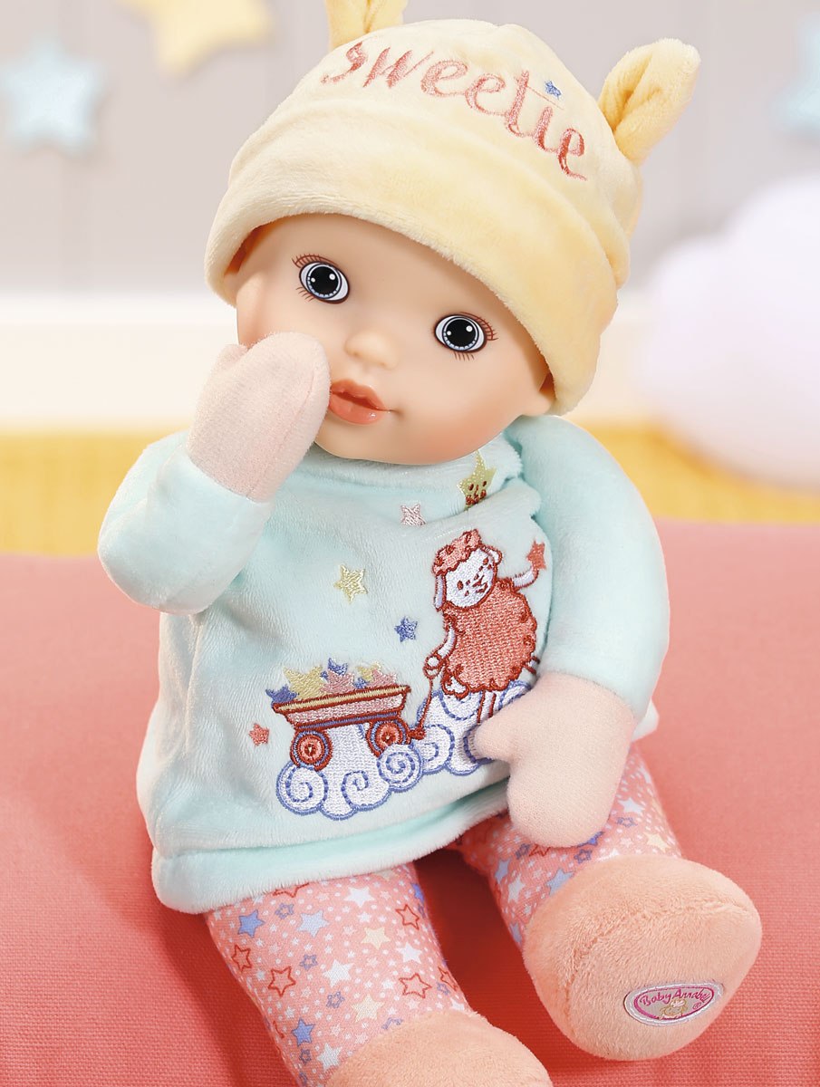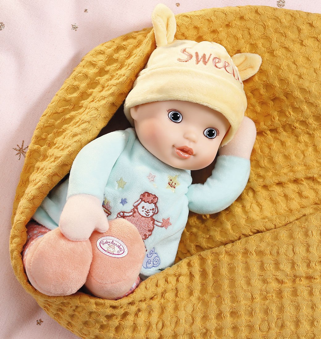 Papusa bebelus BABY ANNABELL (30 cm, textila, cu zornaitoare in interior)