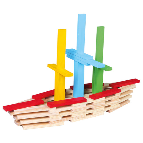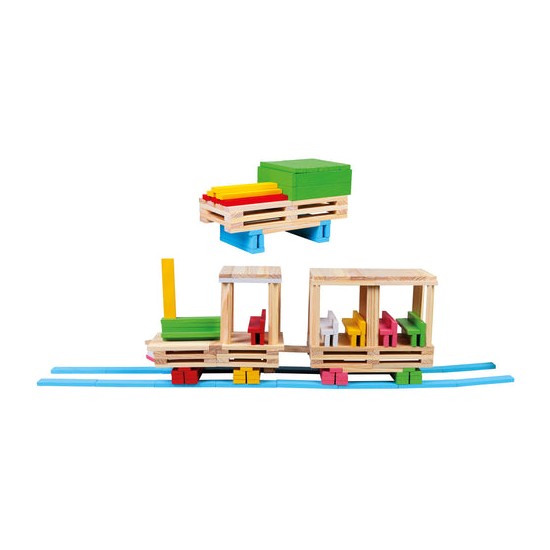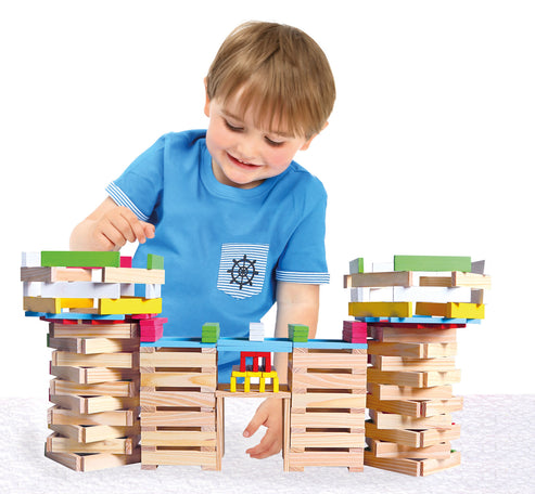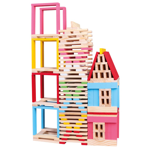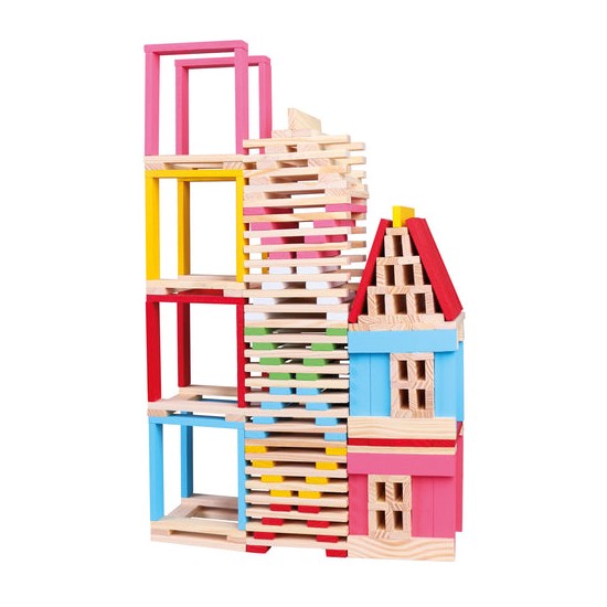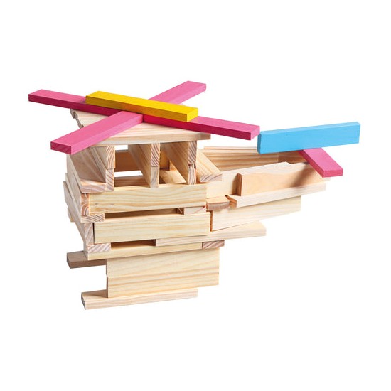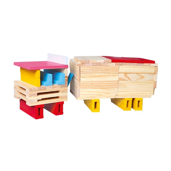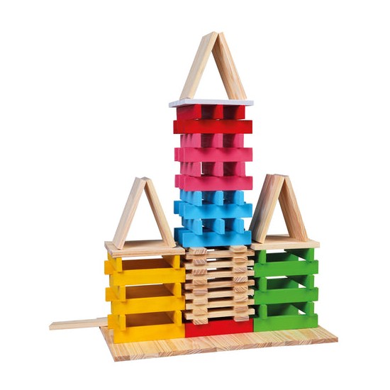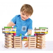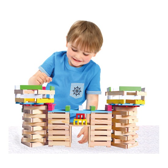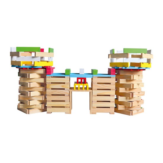 Setul de contructie cu piese din lemn este o alegere potrivita de cadou atat pentru fetite cat si pentru baietei. Toti copilasii vor adora piese calitative din lemn care le vor oferi posibilitatea sa construiasca cele mai deosebite turnuri, castele si multe alte forme impresionante.