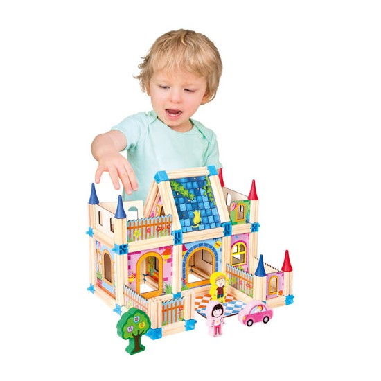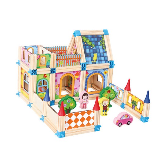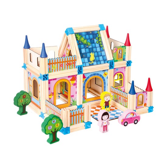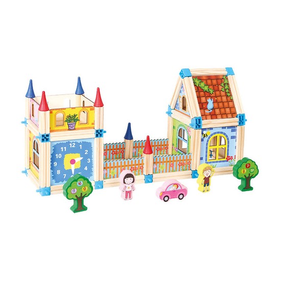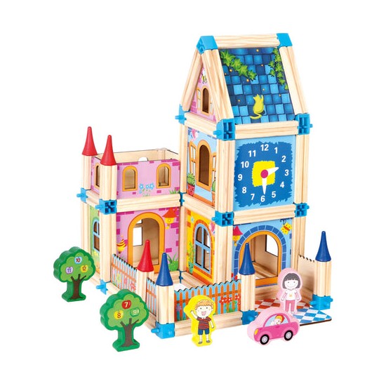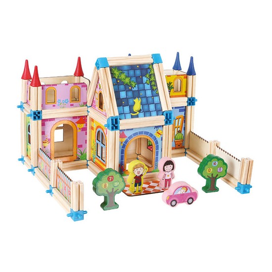 Acest set de construit din lemn,Castel, educational si creativ, ajuta la dezvoltarea creativitatii si rabdarii copiilor, contine piese din lemn a caror imbinare este simpla, iar cu ingeniozitate se pot obtine niste structuri cu adevarat spectaculoase.