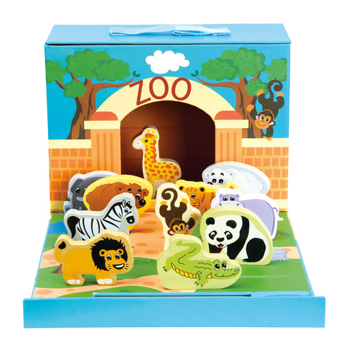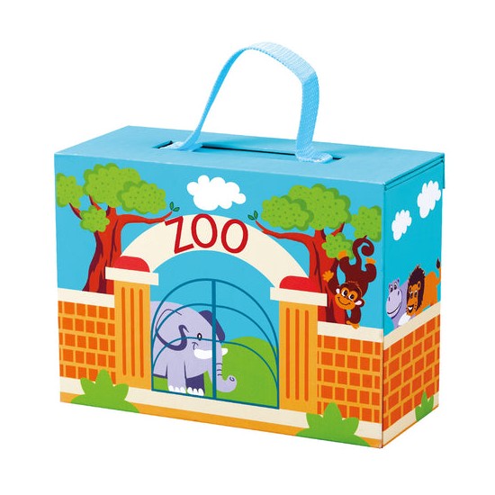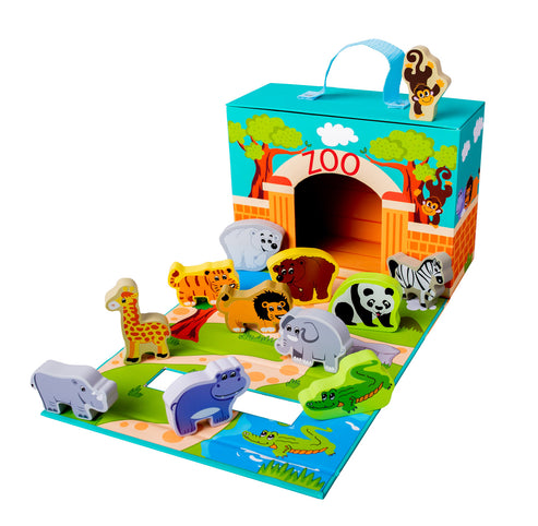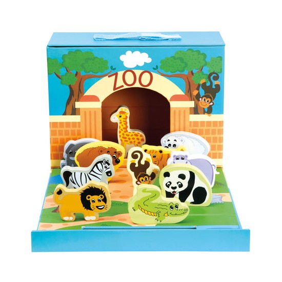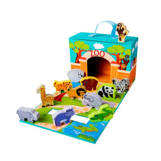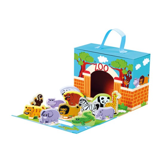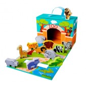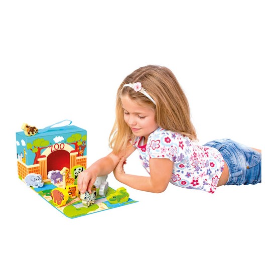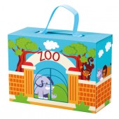 Set de joaca din lemn, Animale Zoo, in cutie de calatorie