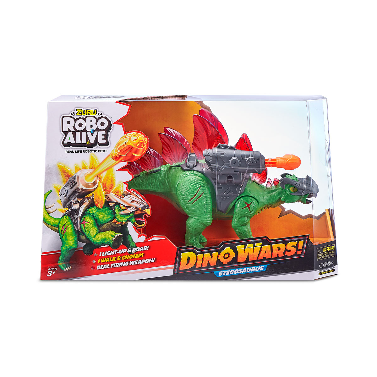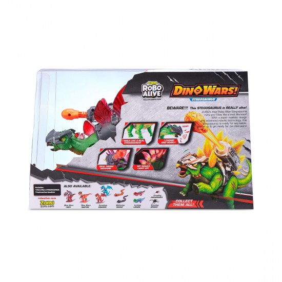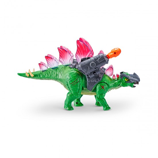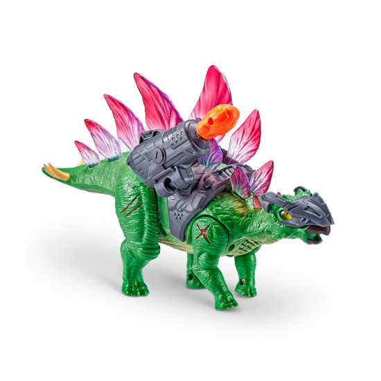 Jucarie interactiva ROBO ALIVE din seria Razboiul dinozaurilor - STEGOSAUR COMBAT este un dinozaur robot realist in armura si cu o arma care impusca.