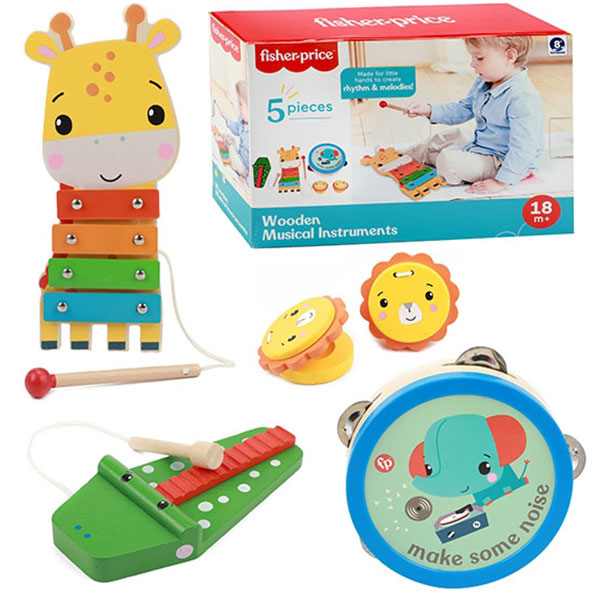 Set 5 instrumente muzicale din lemn Fisher-Price