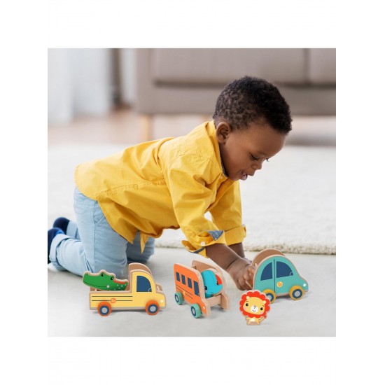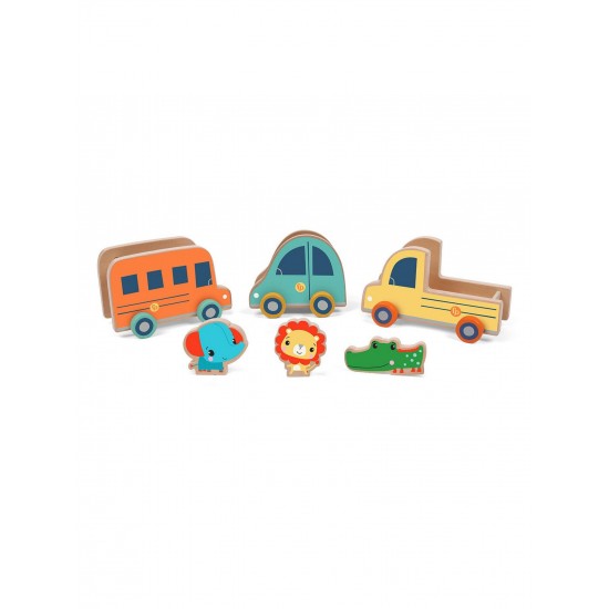 72028A Set 3 masinute + 3 animale din lemn Fisher-Price