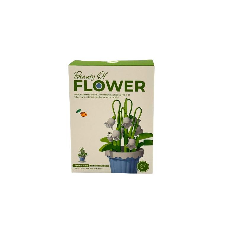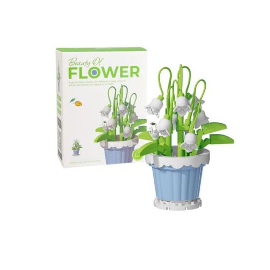 - Detalii realiste: Ghiveciul miniatural si clopoteii albi ai crinului-de-vale sunt realizati cu precizie din blocuri de plastic colorate, oferind un aspect estetic deosebit.
