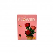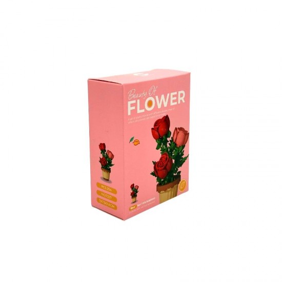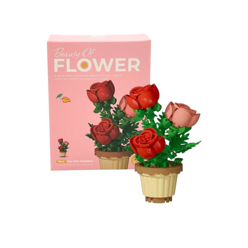Set constructie pentru copii, floare Trandafir in ghiveci, 204 piese, 7x7.5x11.6 cm