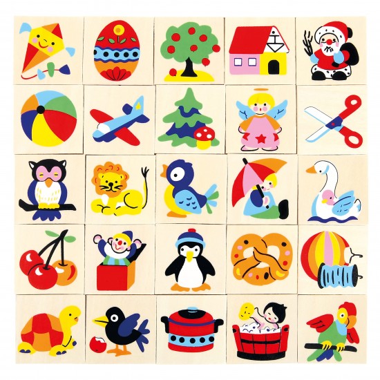 Set semne educative din lemn 25 piese diverse imagini 4x4cm