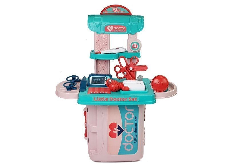 Set valiza doctorului cu diverse instrumente, roz