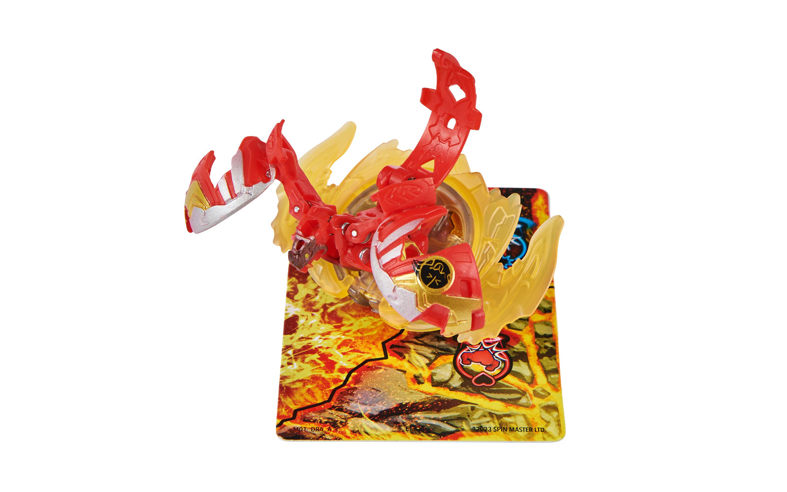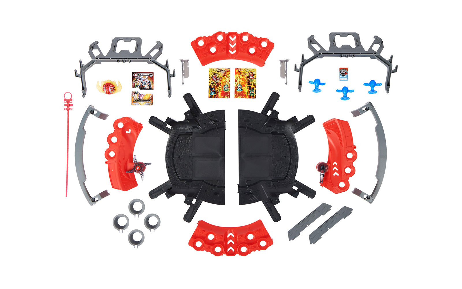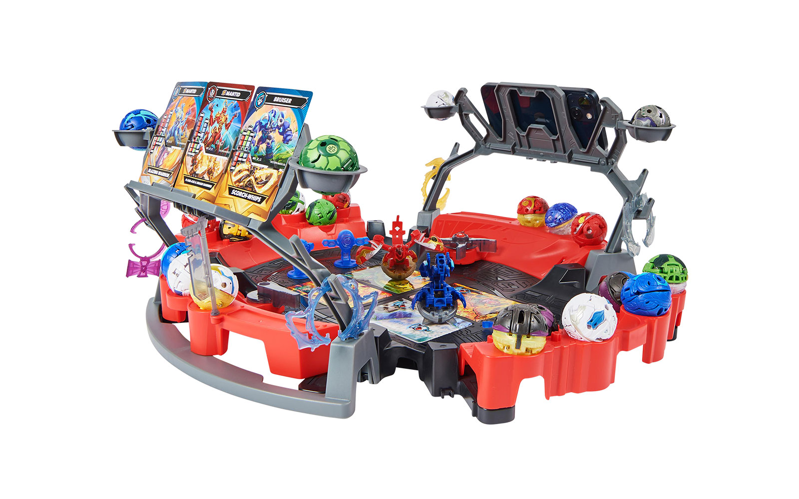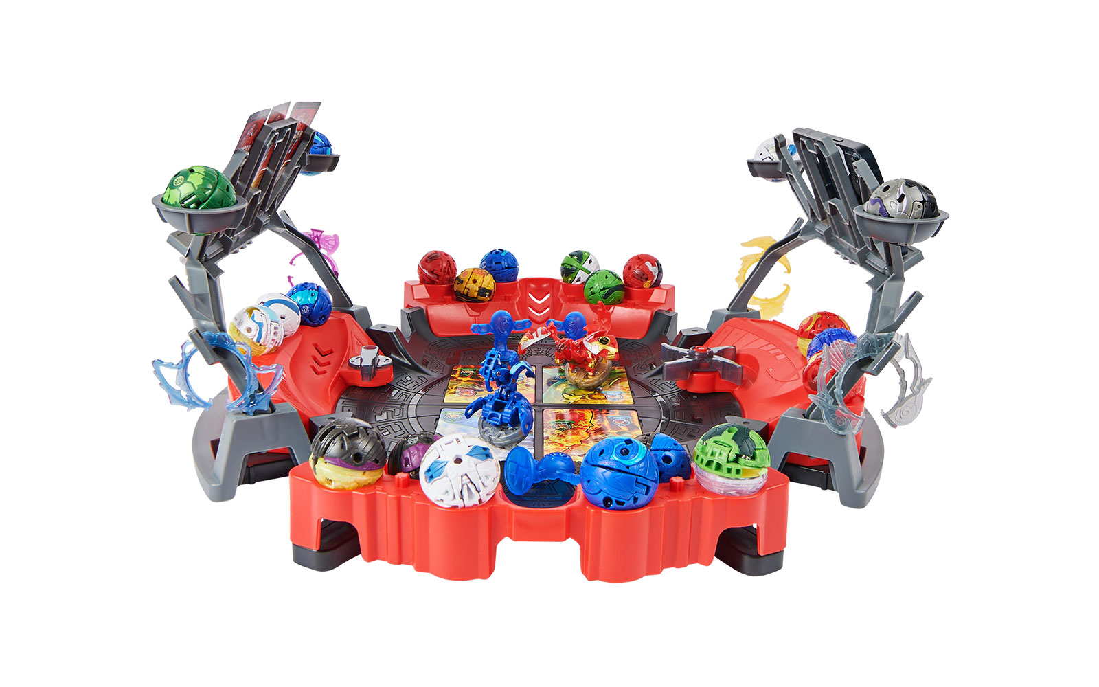 Construieste-ti Arena de lupta cu steaguri de clan si totemuri de lupta pentru a crea obstacole unice. Glisati, invartiti si loviti-va Bakuganul pe diferite obstacole cu roti si palete pentru un joc unic. Aceasta arena include un Dragonoid Bakugan exclusiv de atac special (invartire) si carti de schimb pentru a te ajuta sa intri in actiune. Folositi cordonul XL pentru a invarti Bakuganul exclusivist sau rostogoliti Bakuganul asamblat pe cartile de poarta pentru a le urmari transformandu-se cu transformarile iconice pop-deschise.